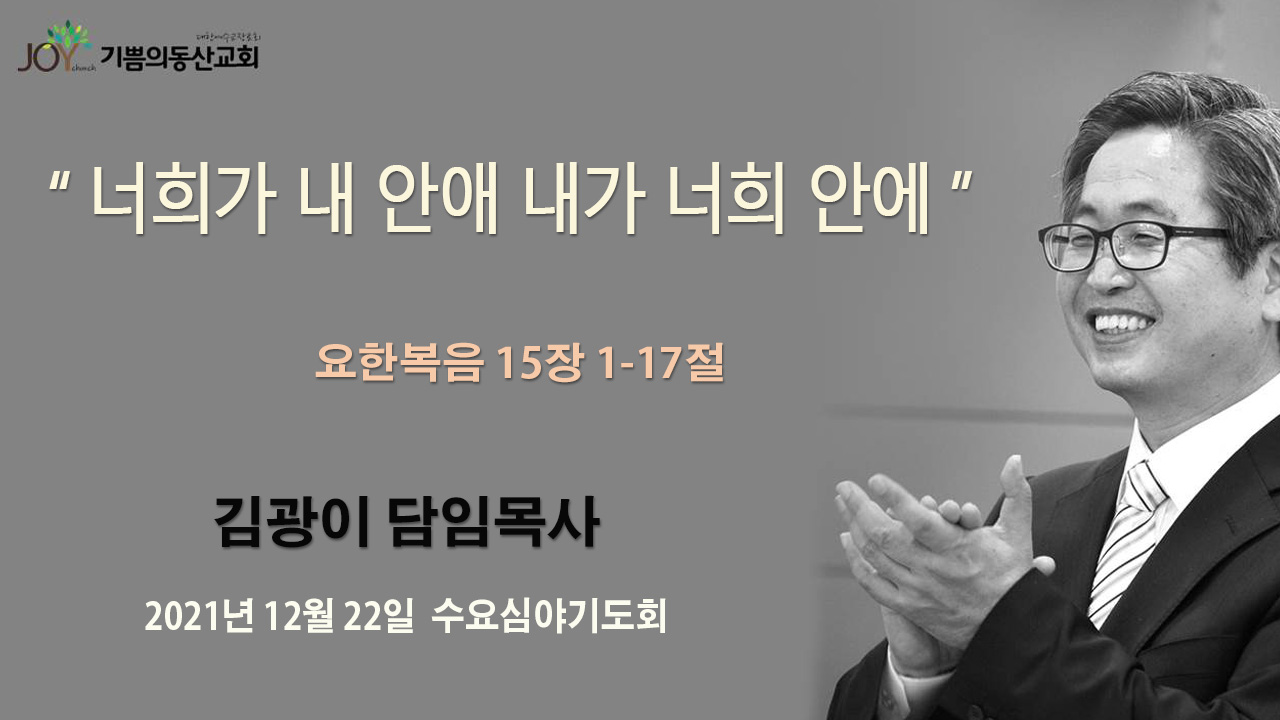 11. 내가 이것을 너희에게 이름은 내 기쁨이 너희 안에 있어 너희 기쁨을 충만하게 하려 함이라