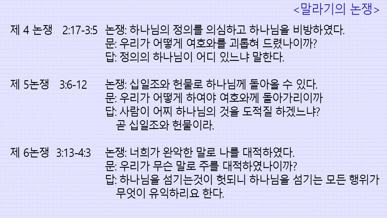 7. 만군의 여호와가 이르노라 너희 조상들의 날로부터 너희가 나의 규례를 떠나 지키지 아니하였도다 그런즉 내게로 돌아오라 그리하