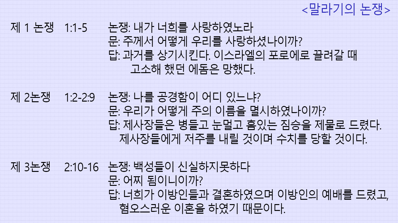 1. 만군의 여호와가 이르노라 보라 내가 내 사자를 보내리니 그가 내 앞에서 길을 준비할 것이요 또 너희가 구하는 바 주가 갑자기 그의 성전에 임하시리니 곧 너희가 사모하는 바 언약의 사자가 임하실 것이라