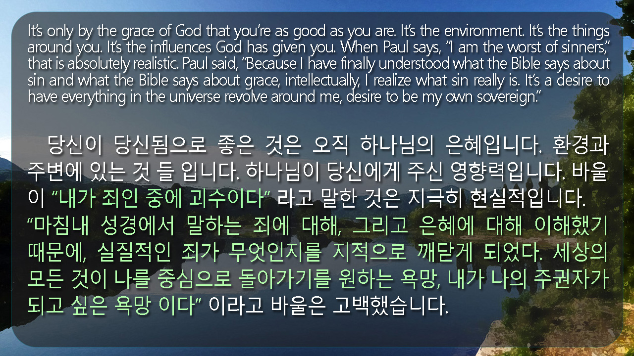 15. 미쁘다 모든 사람이 받을 만한 이 말이여 그리스도 예수께서 죄인을 구원하시려고 세상에 임하셨다 하였도다 죄인 중에 내가 괴수니라